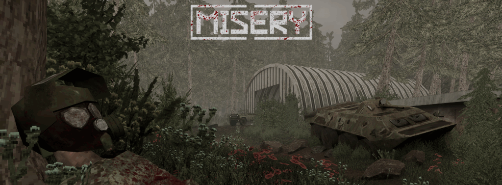 MISERY はSteamにて2025年10月に発売された 1~5 人協力プレイ対応のローグライト・サバイバルゲームです。プレイヤーは放射能で汚染されたザスラヴィエ隔離区を探索して物資を集めながらバンカーを強化し、毎日発生するサイレンと放射能爆風から生き延びます。エリアは軍基地や研究所、荒廃した町などが日替わりで生成され、内部には奇妙なアノマリー(異常現象)やバンディット、変異生物が存在し、うっかり近付くと即死しかねません。プレイヤーは空腹・喉の渇き・放射線・精神力などを管理しながら安全地帯のバンカーを拡張し、クラフトで装備や発電設備を作り、商人と交易しながら少しずつ生存確率を上げていきます