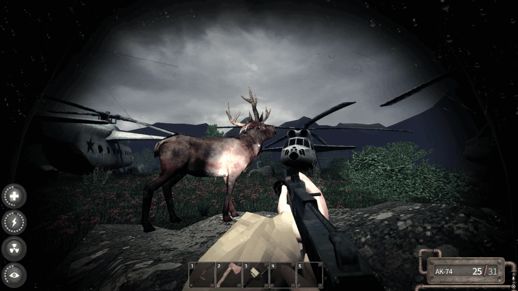 倒すと皮×1とトロフィー×1、生のシカ肉×2をドロップ。シカ革は裁縫キットを作成する際に使用する。