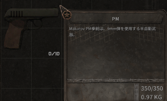 序盤から手に入るハンドガン。威力は弱く装填数も少ないので心もとない。