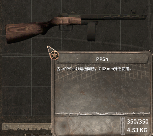 サブマシンガン。威力は低めだが装填数が非常に多く多数の敵とも戦えるのが魅力。