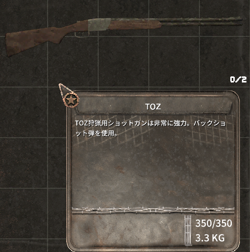 狩猟用ショットガン。装填数も2発だが威力は高い。